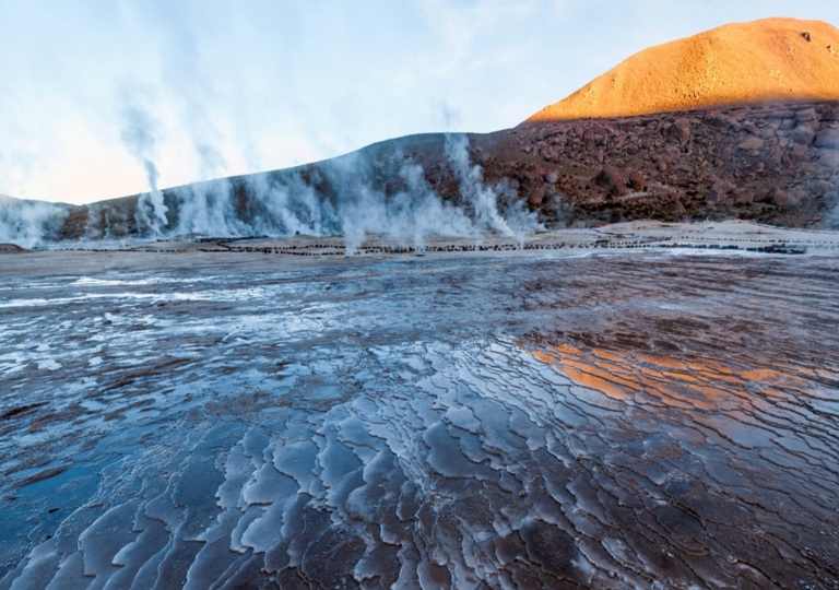 Partenza prima dell’alba (4.00 del mattino) per i Geiser del Tatio. Arrivo e visita guidata del campo geotermale per osservare le imponenti “fumarole” che raggiungono il loro massimo splendore prima dell’alba. Colazione di fronte ai Geiser e rientro a San Pedro de Atacama, lungo il percorso si avrà una spettacolare vista dei Vulcani Tocorpuri e Sairecabur. Il resto della giornata è a disposizione per la visita libera del paese e del mercato artigianale. Cena libera e pernottamento.