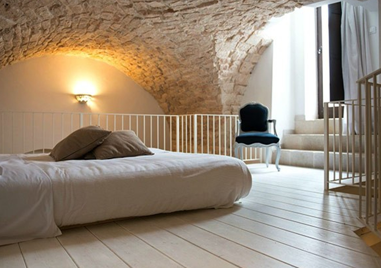 -Junior Suite: il contrasto tra murature in pietra bianca, intonaci e travi in legno, la vista sulla imponente Cattedrale romanica e l'accogliente salottino, sono le caratteristiche di queste dimore da due posti letto nel cuore del centro storico. Arredi di charme e tutte le dotazioni utili quali aria condizionata, riscaldamento, frigobar e piccolo angolo cottura celato in un mobile in stile, TV sat, telefono diretto, internet wi-fi gratis, cassaforte.