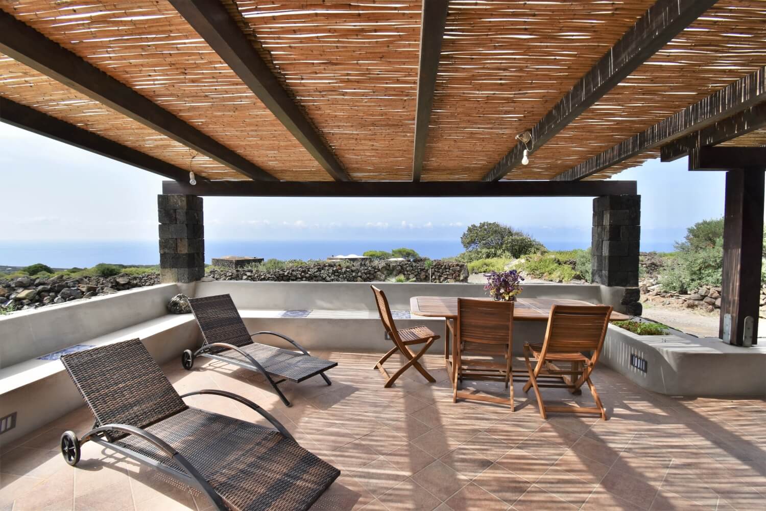 Descrizione: Una terrazza incantevole con vista sulle coste africane offre momenti di tranquillità, mentre il giardino curato e l'attenzione ai dettagli creano un'atmosfera accogliente. Il dammuso presenta una camera matrimoniale, un bagno con doccia e una cucina attrezzata, mentre la terrazza coperta offre una vista mozzafiato sul mare.