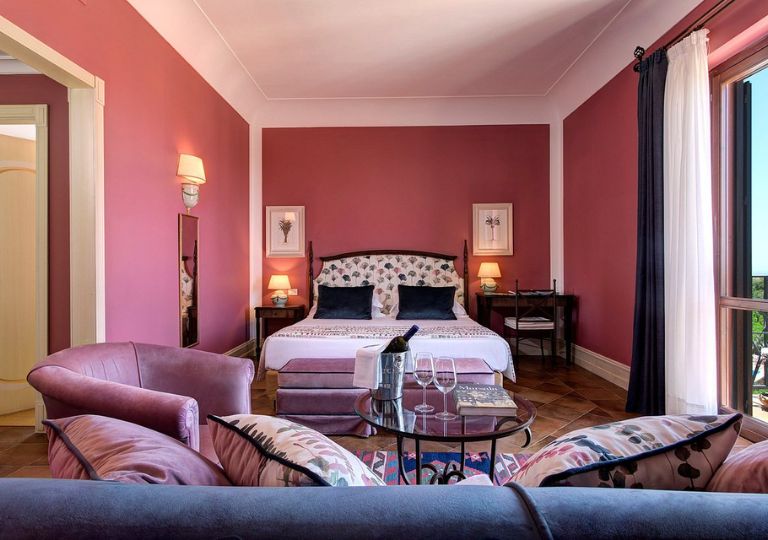 Le camere sono eleganti e spaziose, arredate con gusto e arricchite da elementi di design siciliano. Molte camere offrono viste mozzafiato sui vigneti circostanti o sul Mar Mediterraneo. Ogni dettaglio, dai tessuti pregiati ai mobili artigianali, è pensato per garantire il massimo comfort e raffinatezza.