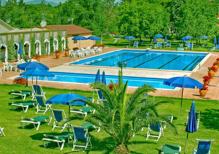 Una superficie di 100 ettari, su cui si ergono camere e appartamenti accoglienti e funzionali, il Beauty, Wellness & Sport con innumerevoli impianti sportivi, 4 piscine esterne, palestra e centro benessere e ancora l’orto e la fattoria con gli animali.