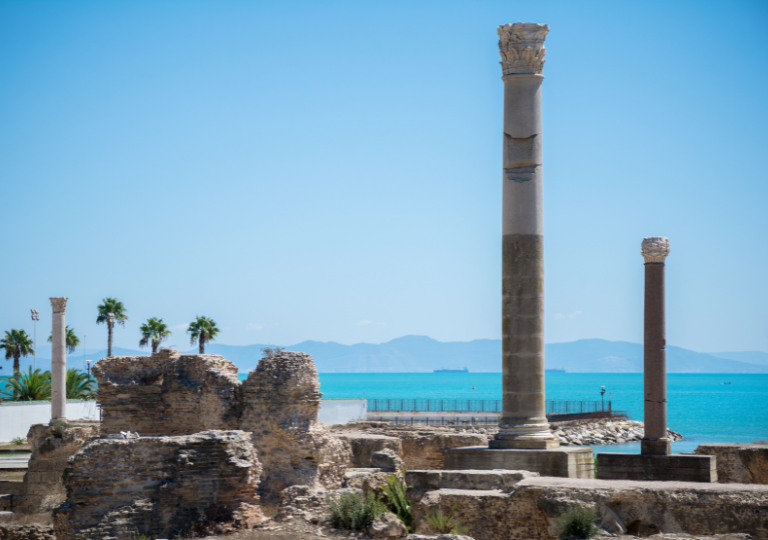 Sulla sponda orientale del lago di Tunisi si trova il sito archeologico che più di tutti rappresenta la varietà di popoli che hanno colonizzato il paese: fenici, romani e arabi, hanno tutti lasciato un segno della loro dominazione nelle architetture che ancora oggi caratterizzano la città di Cartagine.