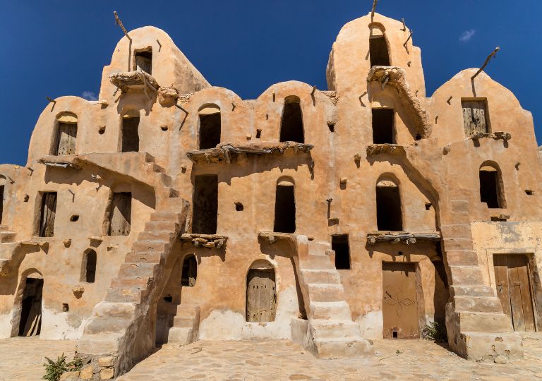 Dopo colazione, esploreremo il rinomato anfiteatro romano di El Djem, il terzo più grande al mondo, con una capacità di 35.000 posti a sedere. Il nostro viaggio ci porterà poi a Matmata, un eccezionale villaggio berbero famoso per le sue abitazioni sotterranee uniche e un paesaggio che evoca la luna. Durante la visita a una casa troglodita, scopriremo l'affascinante architettura sotterranea e la vita quotidiana dei suoi abitanti. Avremo anche l'opportunità di immergerci nell'atmosfera del famoso hotel troglodita "Sidi Driss", noto per la sua apparizione in "Star Wars". Pranzeremo con una famiglia berbera nella loro casa troglodita, gustando piatti tipici della cucina locale. Successivamente, ci dirigiamo verso Toujane, un incantevole villaggio situato sulle montagne di Dhahar, che offre viste mozzafiato. Infine, concluderemo la nostra giornata al Ksar Ouled Dabbab, un antico granaio storico trasformato in boutique hotel. Cena e pernottamento.